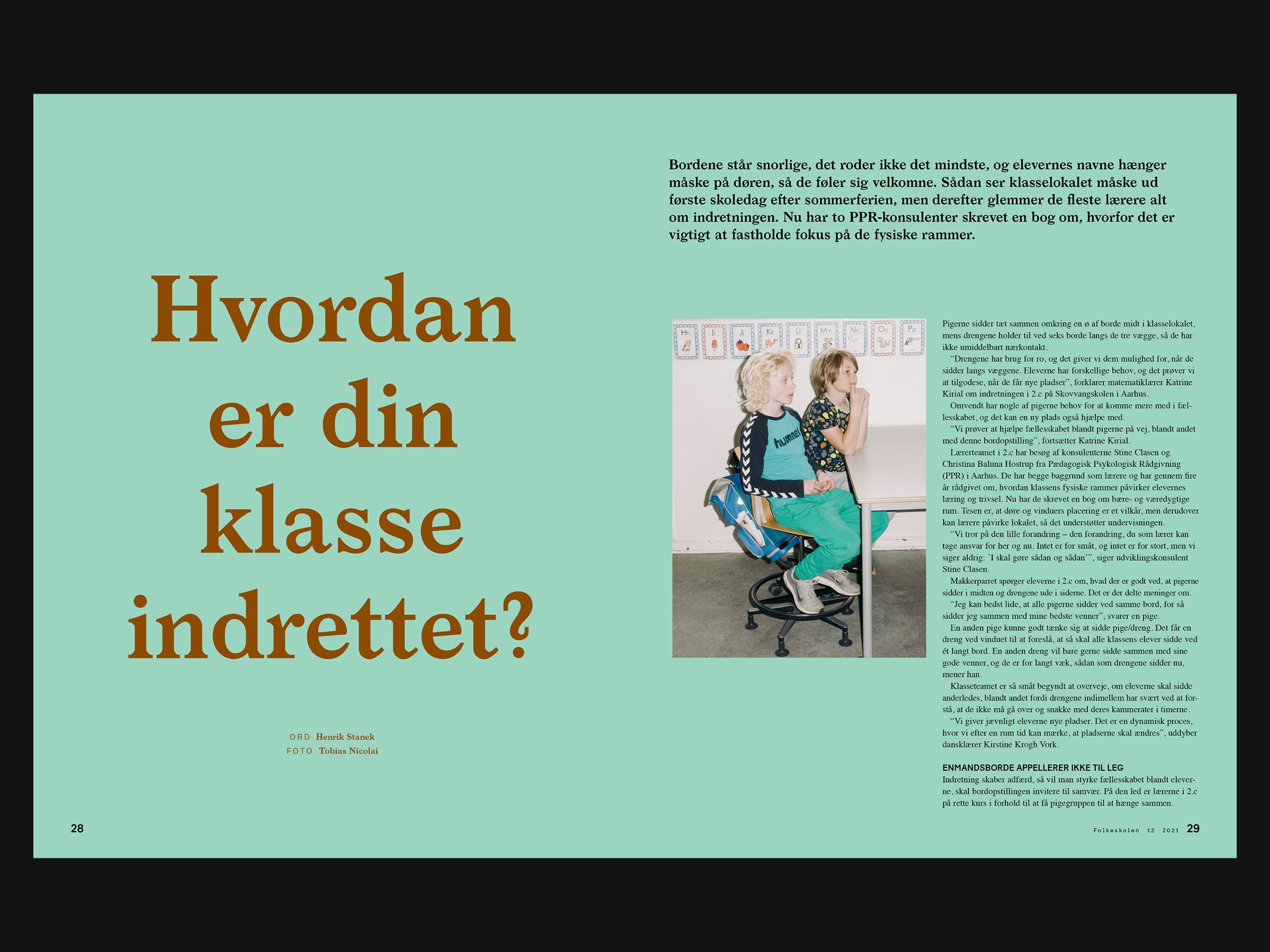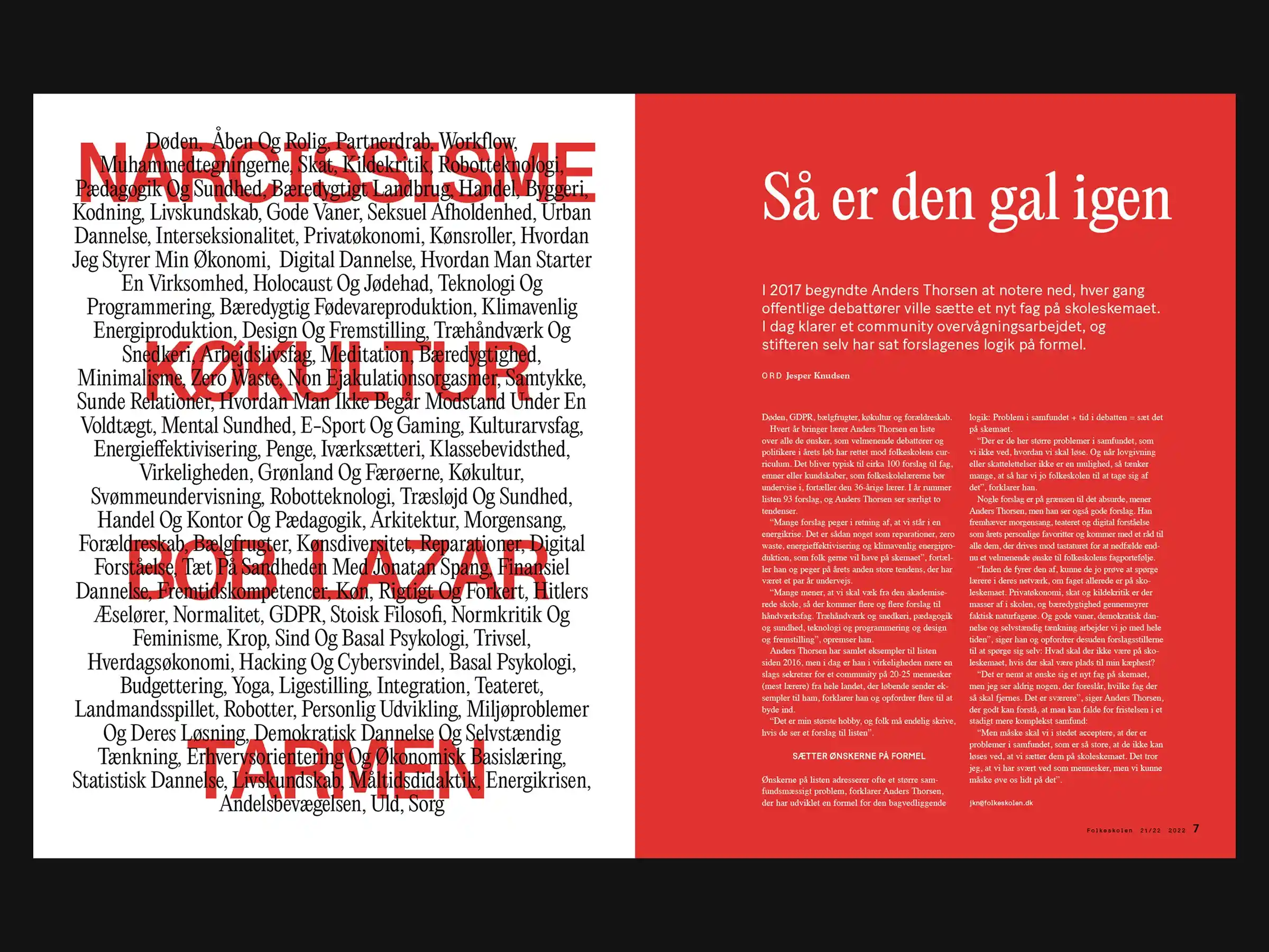 We redesigned Fagbladet Folkeskolen's visual identity in 2020 and ran the editorial layout for four years. The real test of any identity system is whether it holds at scale across 2,000 pages, rotating photographers, and illustrators brought in from across the world. It did.